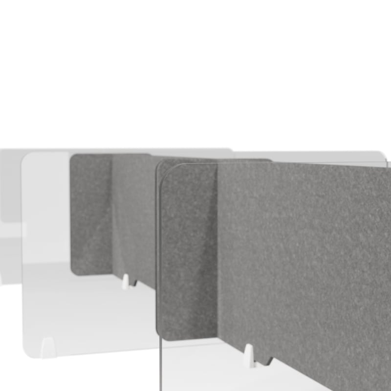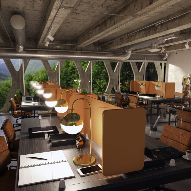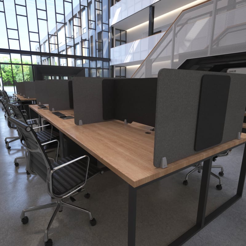 Unna Benching Screen’s range of designs, widths and finishes is ideal for converting existing tables and benches into private workspaces.